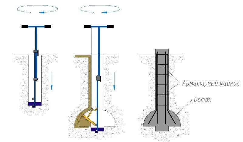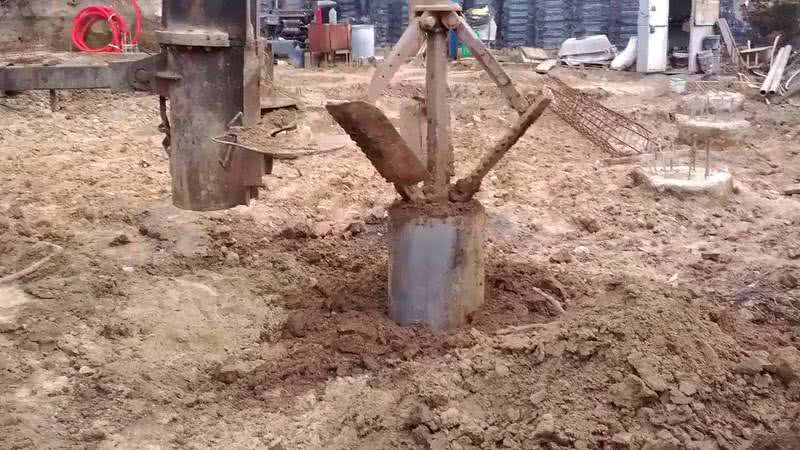- В центре будущей сваи делается углубление 15 см с диаметром таким же, как у бура.