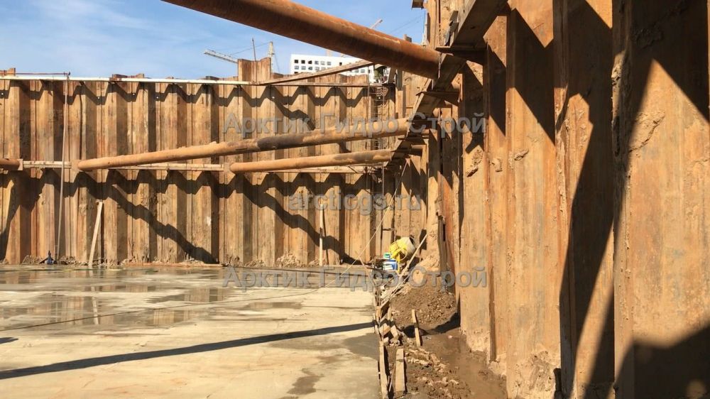 Комплекс работ по устройству шпунтового ограждения стартового котлована с применением вибропогружения и шпунта Ларсена, выполненный специалистами "АрктикГидроСтрой"