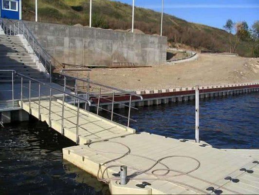 Причал может быть стационарным или понтонным. Понтонный (наплавной) не имеет жесткого соединения с берегом и дном. Изготавливается из любых материалов, от бетона до пластика.