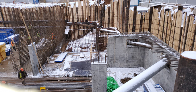 Наши специалисты провели комплексные работы по устройству шпунтового ограждения котлована при строительстве многоэтажного жилого дома с подземной автостоянкой и встроенными помещениями общественного назначения